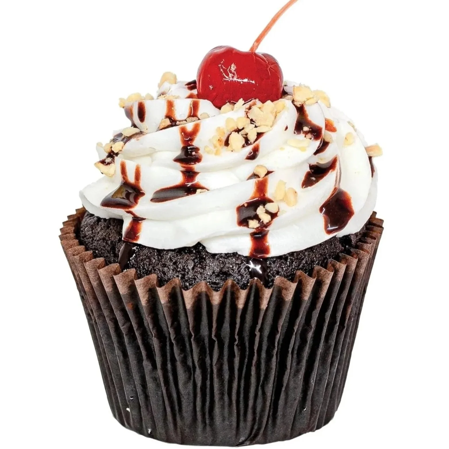 Chocolate cake filled with fudge, frosted with our signature buttercream, finished with chopped peanuts, fudge drizzle, and a cherry on top